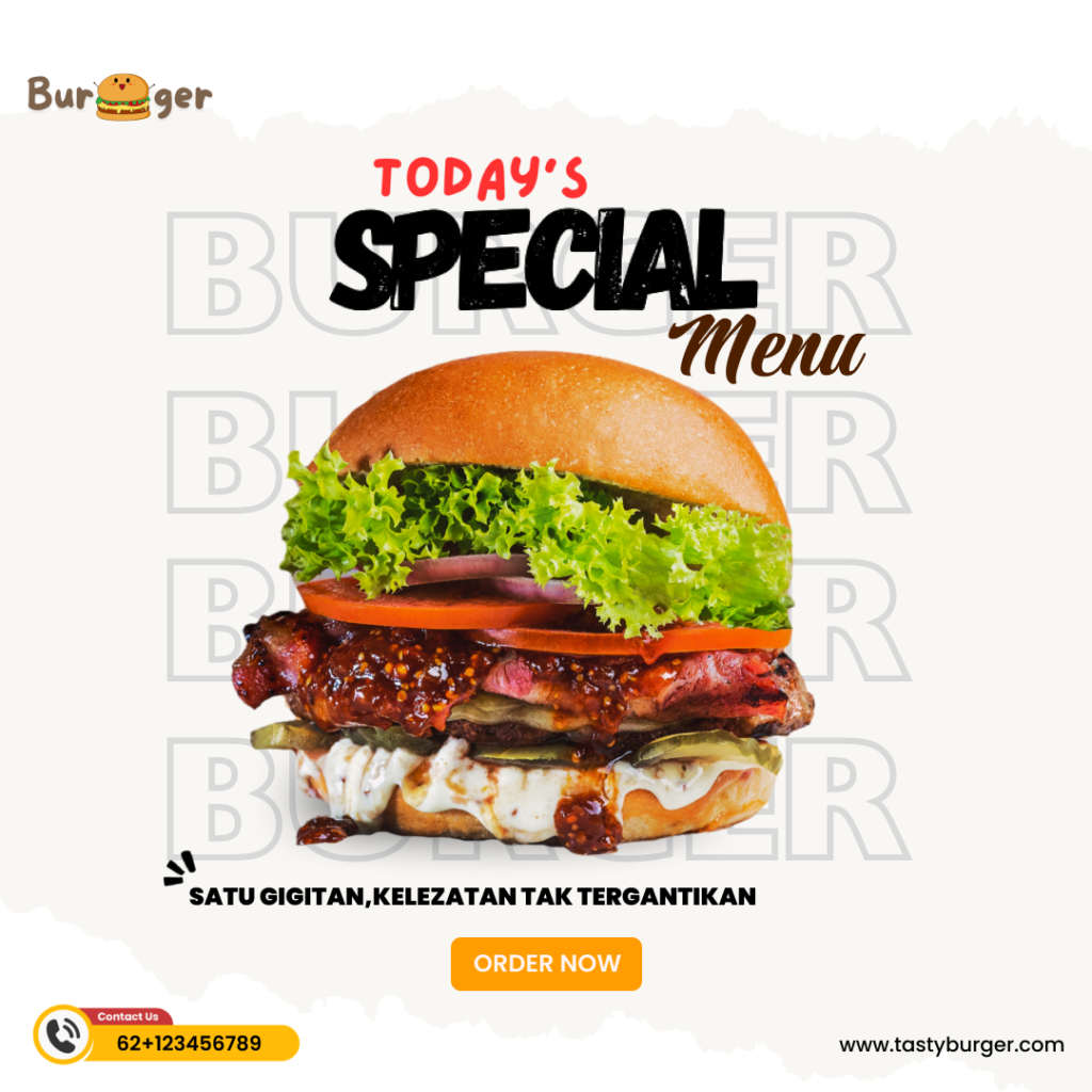 This is an advertising poster with a burger promotion theme. We are free to make a promotional poster about burgers. I made this poster on a platform called figma. I made this poster in about 2 days and it was an assignment that had to be made and collected.